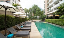 باشگاه لوکس با تراس: ۳۲ مترمربع مساحت. نمایی رو به استخر و یک تخت دو نفره یا دو تخت یک نفره دارد.